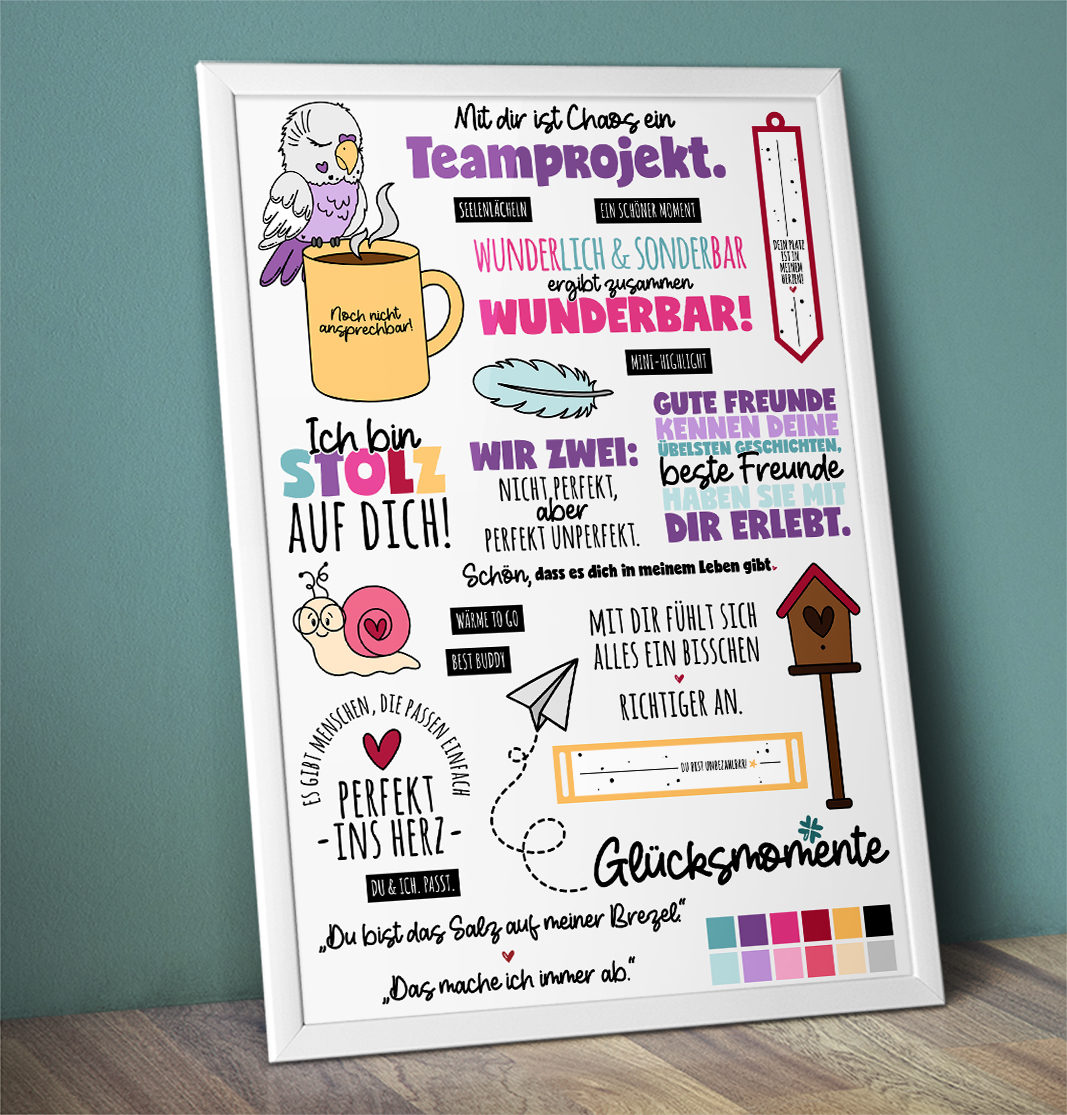 Alle, die den Kalender gekauft haben, können (müssen aber nicht) in unsere Adventskalender-Gruppe kommen und dort jeden Tag Vorschläge machen, welche Sprüche am nächsten Tag kommen, die euch im jeweiligen Set noch fehlen. Dazu gibt es in der Gruppe immer einen Tag vorher eine Umfrage, da könnt ihr Wünsche zufügen oder auch einfach Texte von anderen pushen, die ihr toll findet. Ihr gestaltet aktiv den Kalender mit! Eure Ideen und Anregungen in der Gruppe werden diesen Adventskalender zu einem ganz tollen, individuellen Kalender machen. Man muss aber nicht in der Adventskalender Gruppe sein, um seine Türchen zu erhalten.