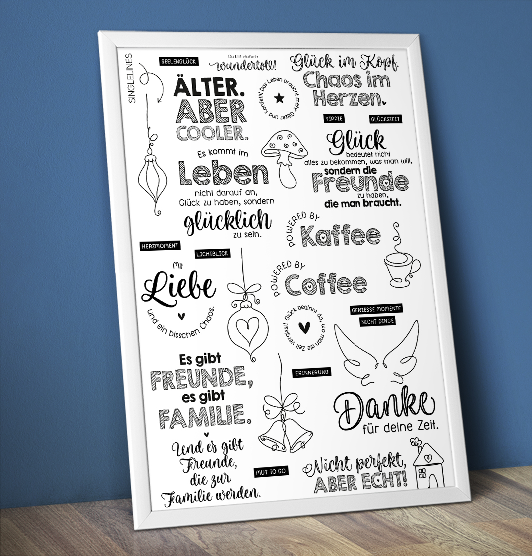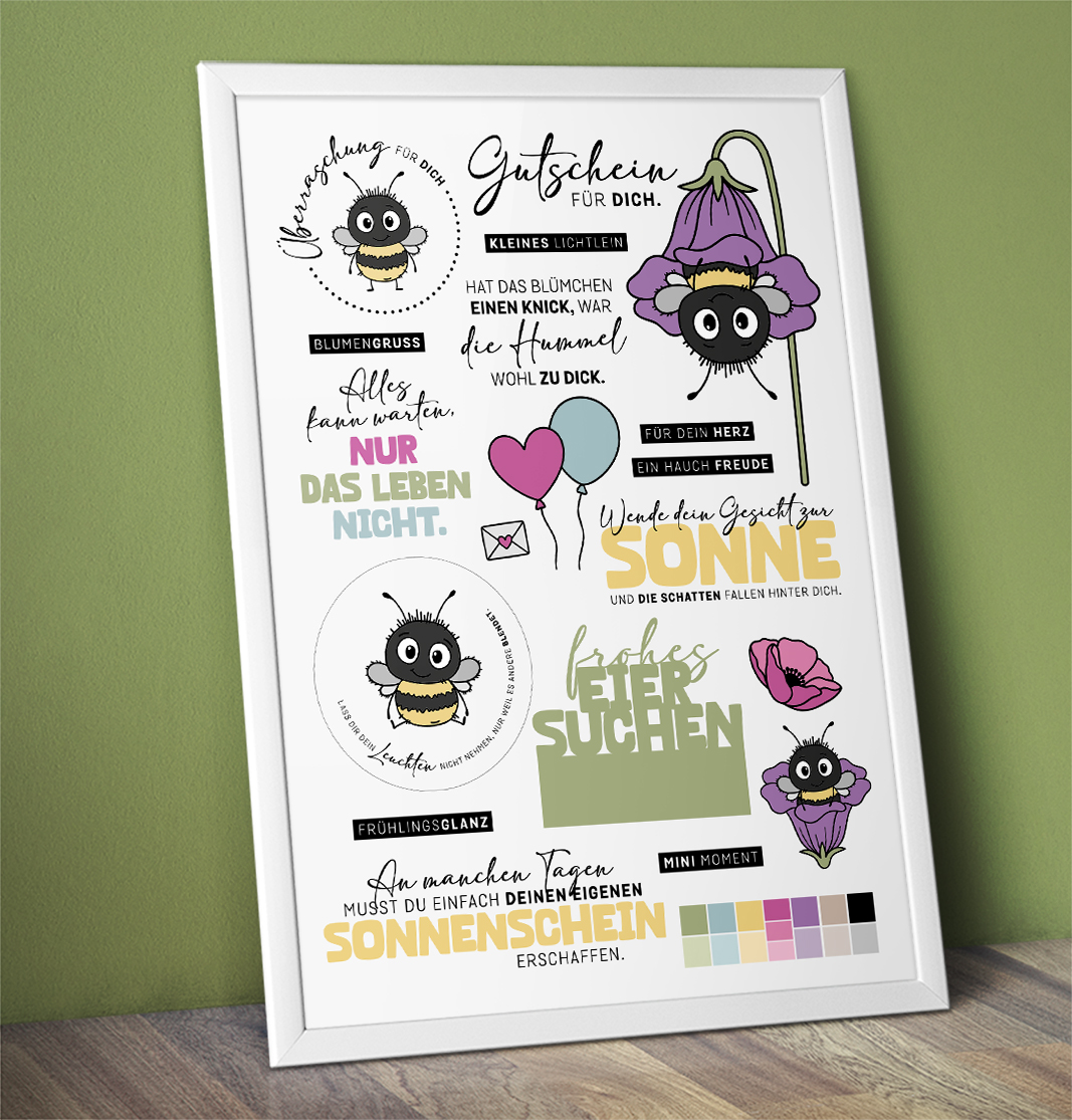 Es erwarten euch exklusive 24 Addons zu schon bestehenden Dateien. Mit dabei sind neben neuen Sprüchen auch neue Papiere, Overlays, Wasserfarbenbilder und manchmal sogar Schneiddateien.